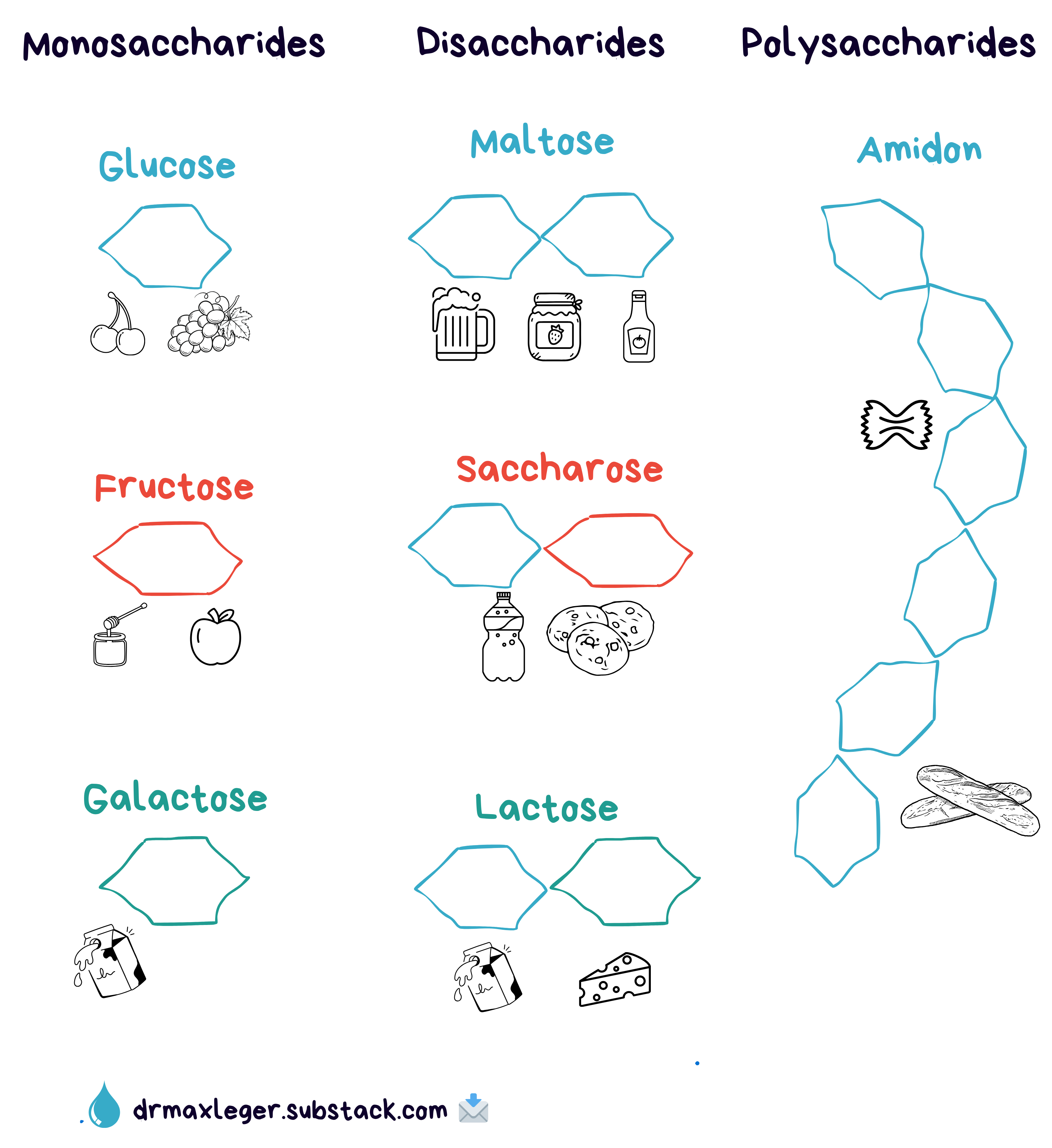 Il existe plusieurs types de glucides, qu’on distingue selon leur structure chimique :